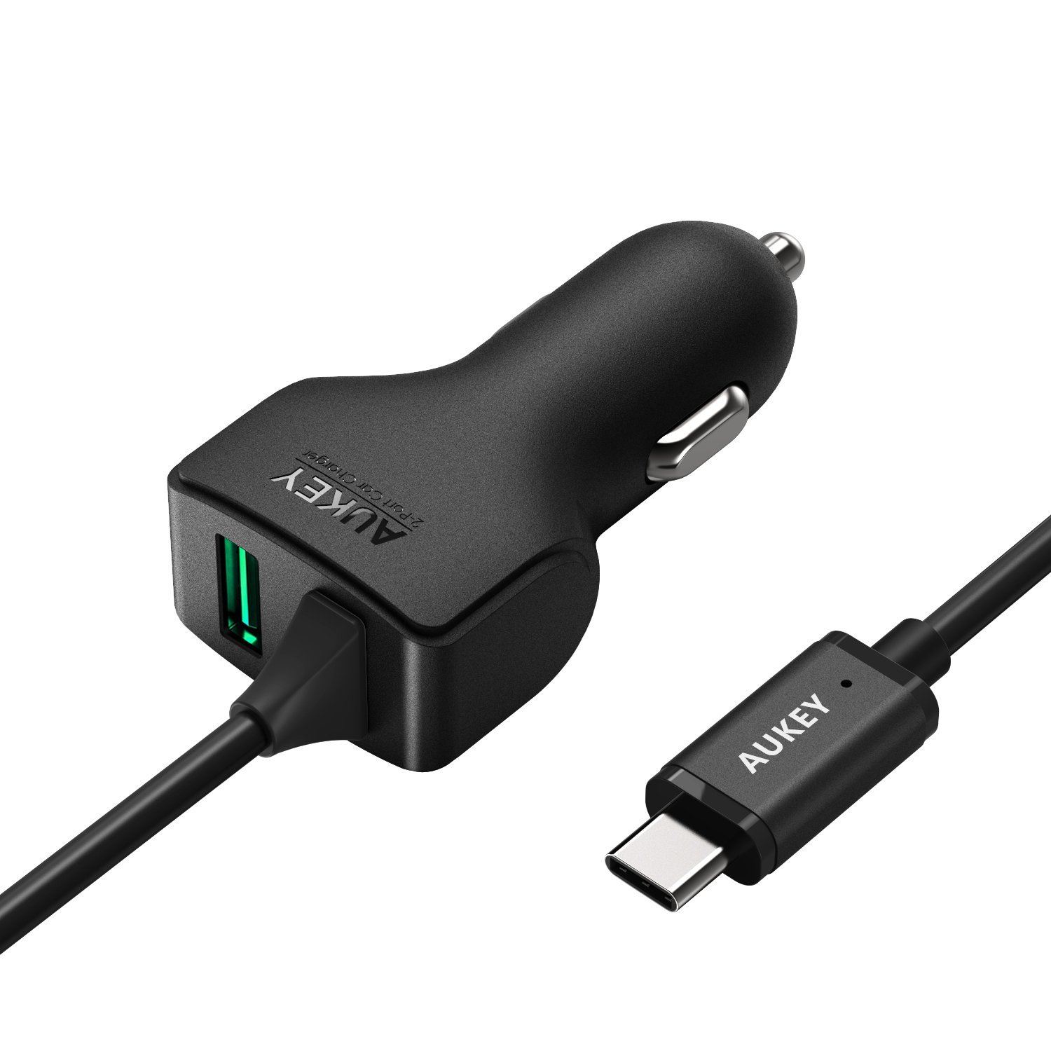 Contenuto del Pacchetto: 1 * AUKEY Caricabatteria per Auto di 27W con Due Porte + Cavo di USB Tipo-C di 1 Metro (Non può essere staccato dal caricabatterie da auto); 1 * Manuale d'Uso; Certificato di Garanzia di 24 Mesi.