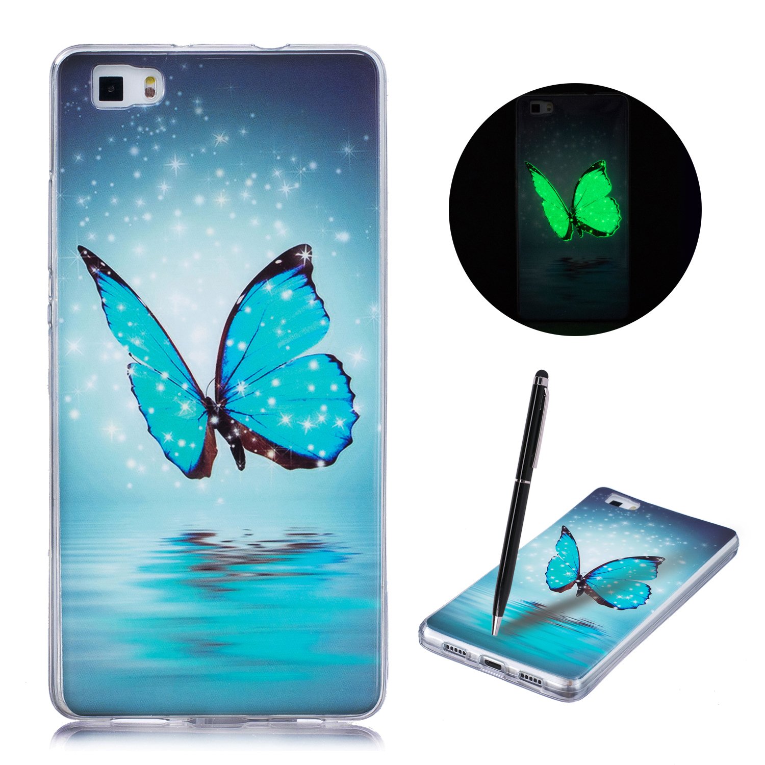 CaseLover Huawei P8 Lite Cover Custodia Morbida Silicone Fluorescente in Dark Ultra Sottile TPU Light Luminous Antigraffio Shell per Huawei P8 Lite 5.0 pollici - Farfalla blu Recensioni